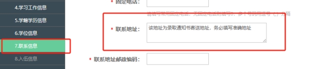 联系地址:请填写填写您的通讯地址(该地址为录取通知书寄送地址,务必填写准确地址)