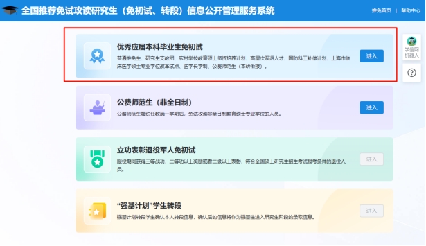 根据教育部要求,医学长学制从推荐阶段起统一纳入推免服务系统管理。2021级“5+3”一体化专业学生须在10月11日至10月17日,按照南京医科大学研究生报考服务系统发布的拟录取结果及书面确定的导师双选结果(学院已审核)在教育部“推免服务系统”中注册、填报志愿,经研究生院审核后完成网上录取工作,有关注意事项如下: